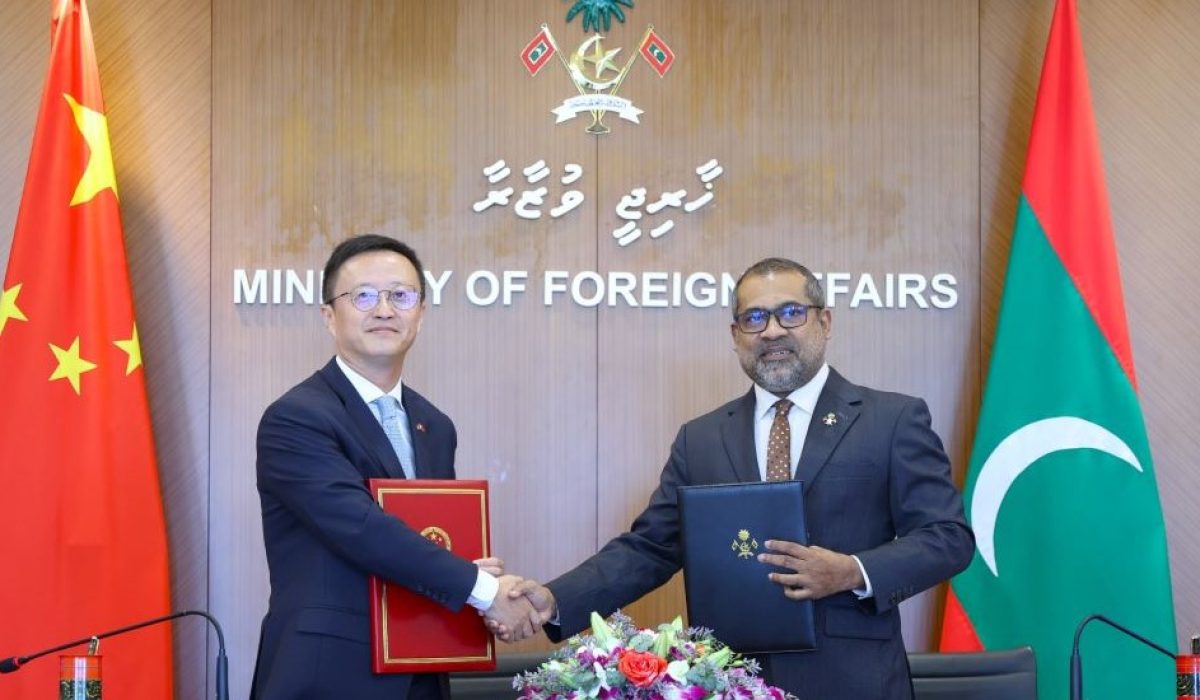 The Maldives and China have signed agreements to carry out three major development projects in the country. The ceremony took place this morning at the Ministry of Foreign Affairs, with Foreign Minister H.E. Ibrahim Khaleel and Chinese Ambassador H.E. Kong Xiaohua in attendance.